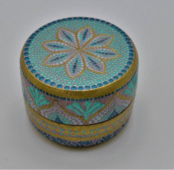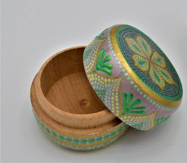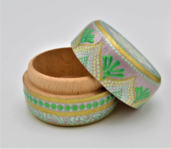 Mini handpainted wooden box for small jewellery or milk teeth. The box is very delicately painted, each box contains about 8 hours of work. The box is protected with a layer of varnish.