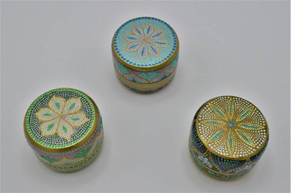 Mini handbeschilderd houten doosje voor bijvoorbeeld kleine sieraden of melktandjes. Het doosje is heel fijn bewerkt, in elk doosje zit zo’n 8 uur werk. Het doosje wordt beschermd met een laag vernis.
