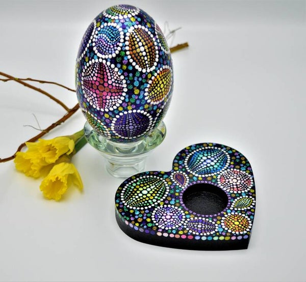 The MDF hand-painted heart, which can be used as a standard, can optionally be bought together with the egg (see variant). The heart is 12 x 14.5 x 2 cm