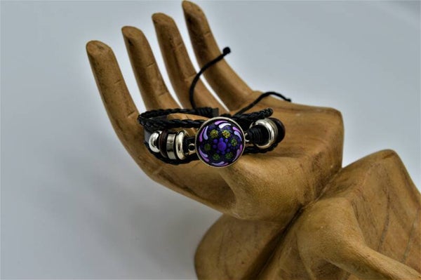 Bracelet with hand-painted cabochon. The bracelet is adjustable with a pull rope system. The cabochon is finished with two layers of acrylic lacquer for protection.