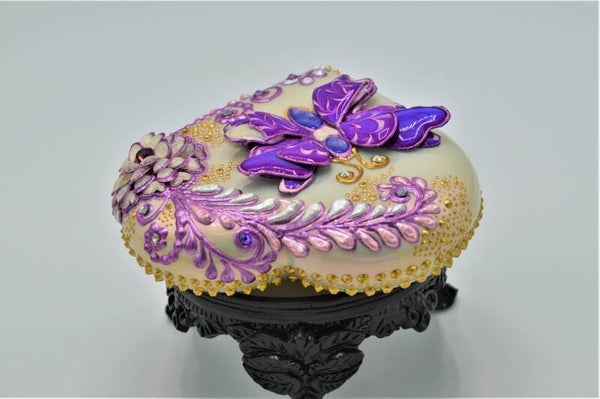 Plaster stone cast from high-quality porcelain plaster. This is decorated with hendala patterns. The decoration is handmade. We only use high-quality materials (paint, resin and Swarovski stones).